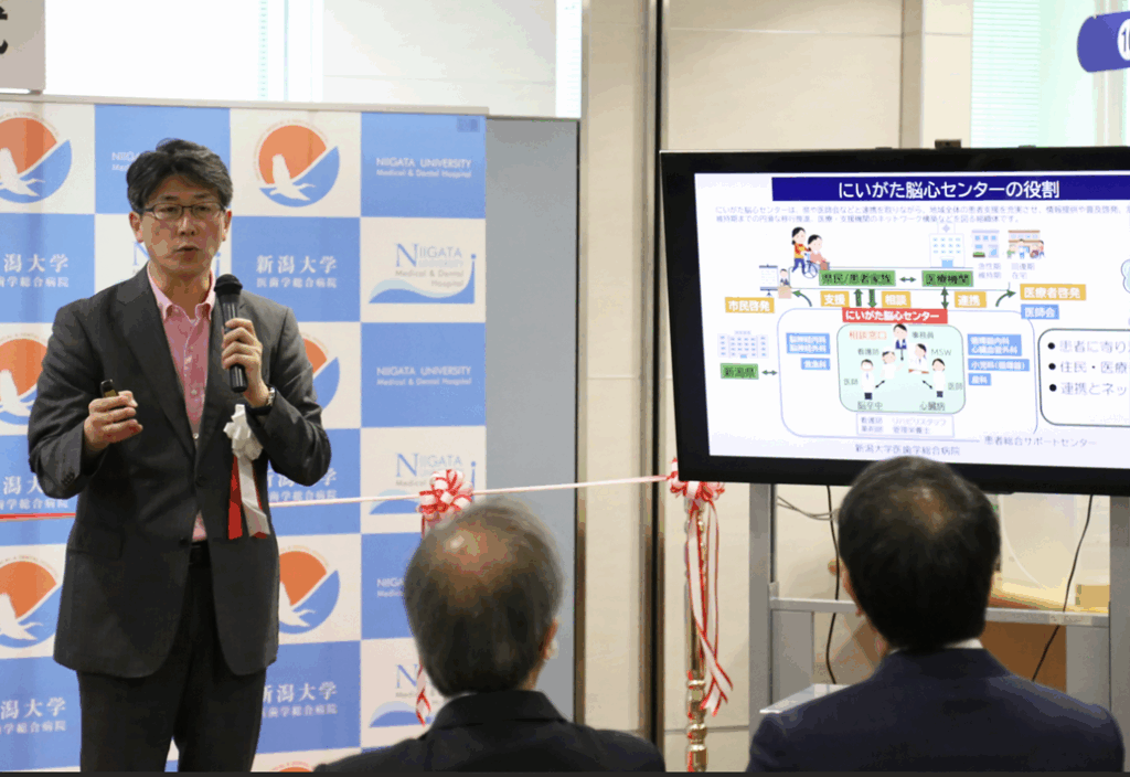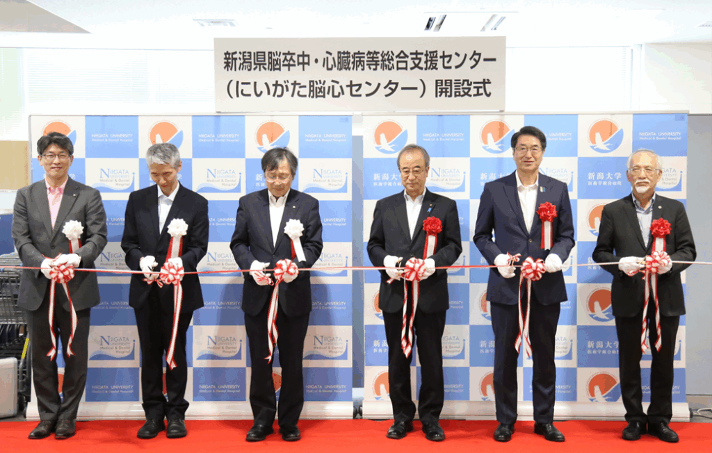 菊地病院長をはじめ、花角新潟県知事、中原新潟市長、牛木新潟大学学長、堂前新潟県医師会長がご臨席され、猪又センター長より事業説明が行われました。「新潟のいのちを守る、明日をひらく」を合言葉に、いよいよ新潟の循環器診療が前進します。
